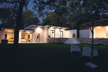 The house was built in 2003 by the architect Martine Lods. Its contemporary architecture, with pure lines, is directly inspired by the Californian villas of the 50s. It is located on the heights of the charming town of Grasse, and enjoys a protected and quiet area. It develops a surface of 260 m² on two levels, both offering direct access to the garden. On the ground floor there is an open plan kitchen, a dining room opening onto a balcony, and a spacious living room with a large living room opening onto two terraces, a music room and a TV lounge. A wing is dedicated to the sleeping area, with three bedrooms and two bathrooms. On the lower garden level there is a beautiful entrance and a fourth bedroom. Nestled in a garden of 7,650 m², this house offers bright volumes and opens to the outside, thanks to ubiquitous transparency games. Overlooking the house, a superb swimming pool lined with trees and surrounded by vegetation completes the ensemble. The use of noble materials (concrete, steel, wood and glass), and a spectacular view over the whole area make this house an exceptional place.