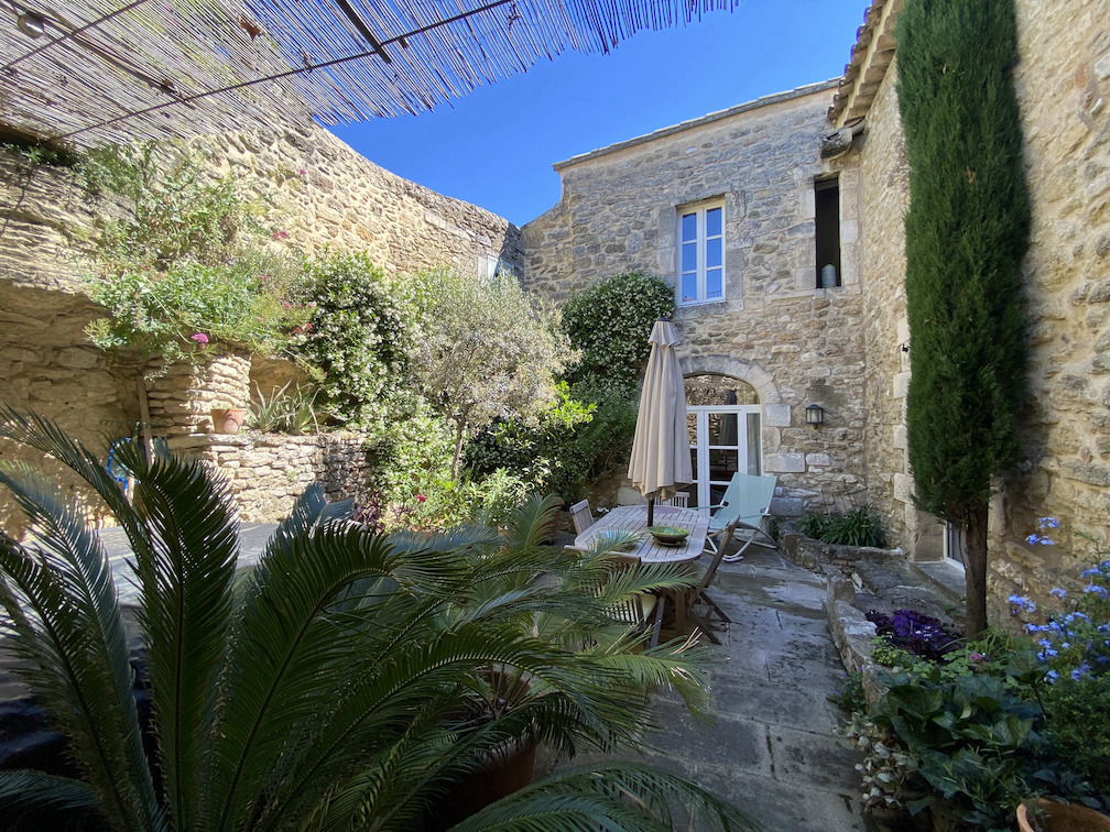 Si vous aimez le lieux de caractère, les salles voûtées, les espaces où chacun peut se retirer en toute intimité ; si vous aimez les patios et cours abritées où il fait bon se rafraîchir l’été dans le jacuzzi, sous le jasmin, et dîner le soir en inspirant le parfum des citronniers , cette maison vous attend. Située en plein cœur du village de Ménerbes, l’un des plus beaux du Luberon, cette maison de village s’articule sur plusieurs niveaux. Deux entrées permettent d’arriver dans un premier appartement pour les invités côté rue, ou, côté jardin, dans le deuxième, plus vaste qui accueille les propriétaires. Deux terrasses baignent de lumière les pièces à vivres. La pierre, les cheminées, la salle voûtée qui accueille la cuisine charmeront les amoureux d’authenticité et de confort. Cerise sur le gâteau, une terrasse, plein ciel qui offre une vue à couper le souffle sur la citadelle et le panorama à 360 degrés.