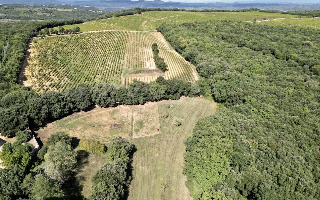 Implanté sur un plateau à 400 m d’altitude, il comprend plus de 100 hectares de vignes en Côtes-du-Rhône Villages et Côtes-du-Rhône générique, complétés par des bois et terres propices à la chasse, à l’élevage ou à la trufficulture.